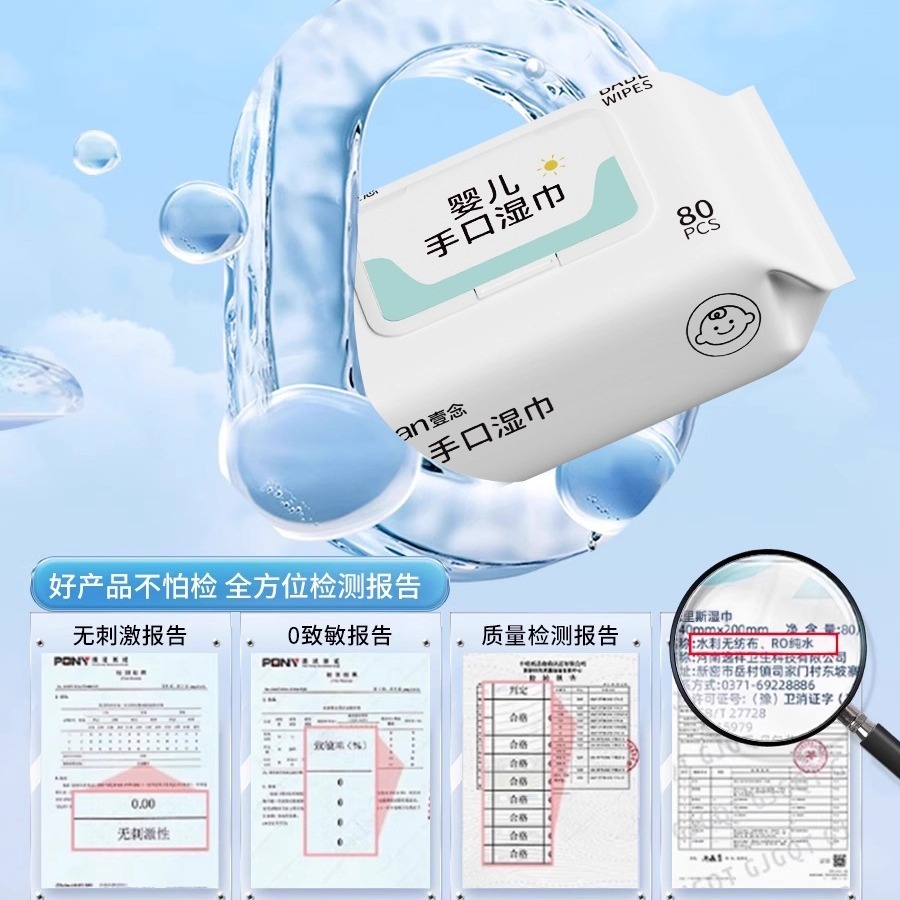 婴儿湿巾纸手口专用湿纸巾宝宝家用80抽加厚加大母婴去污黛雅清洁