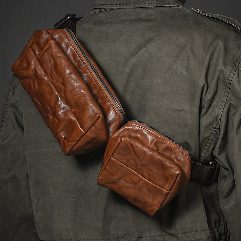 吉卡尼 胸包男款潮牌个性斜跨百搭运动包相机牛皮小背包骑行男包
