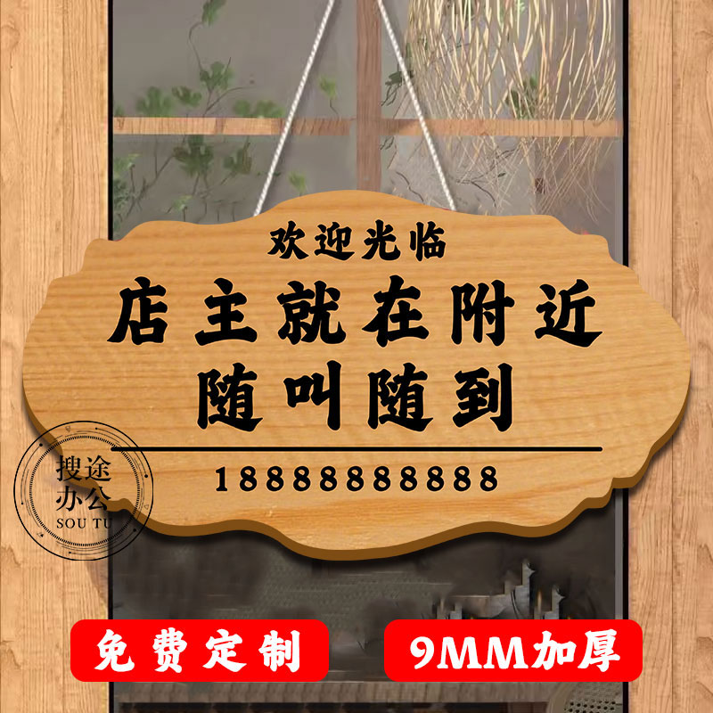 温馨提示牌挂牌定制内容悬挂吊牌标识牌实木纹告示牌门口指示牌标志牌LOGO夜光亚克力警示牌定做可擦写电话牌