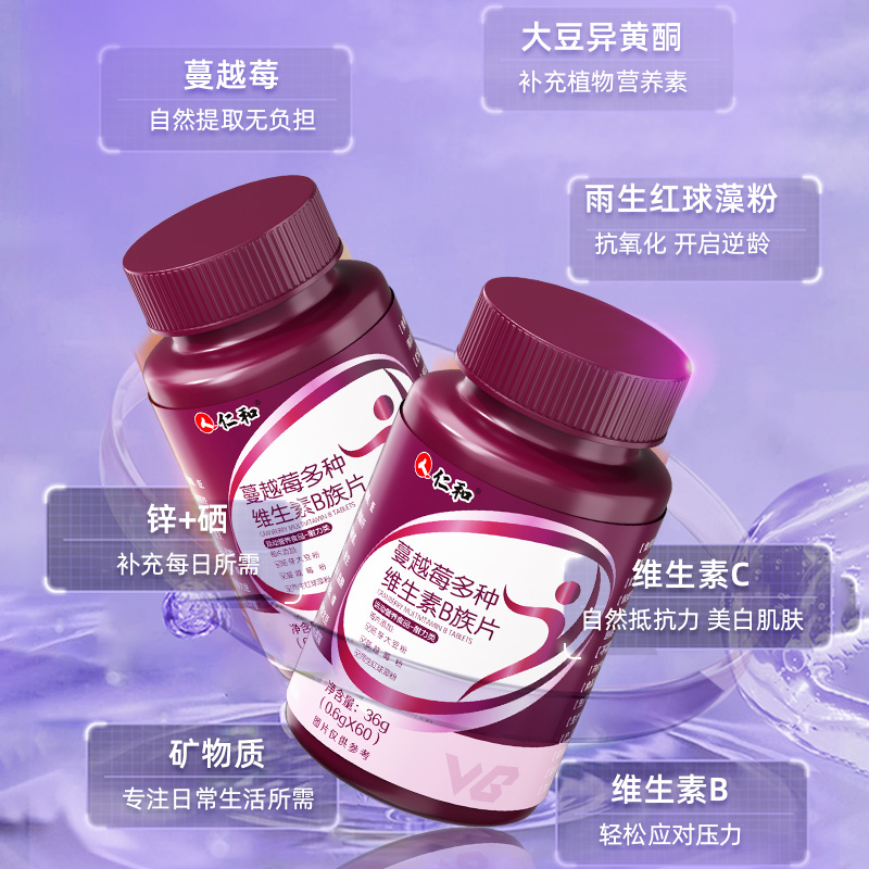 仁和蔓越莓多种维生素B族片烟酰胺女性养护内调改体质差官方正品