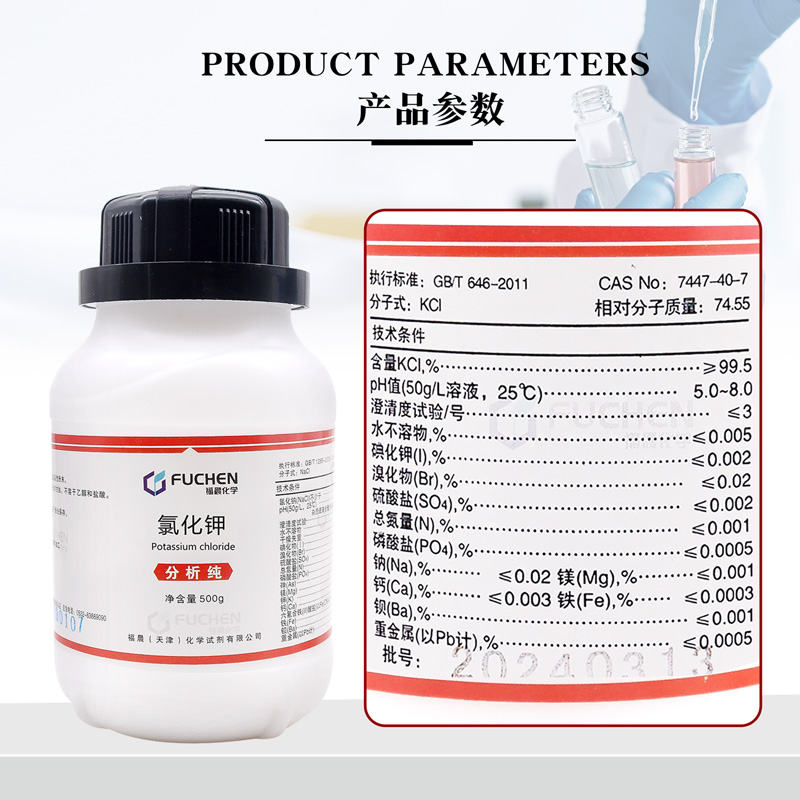 氯化钾分析纯AR500g/瓶化学试剂天津福晨/百世/永大/大茂KCI广试