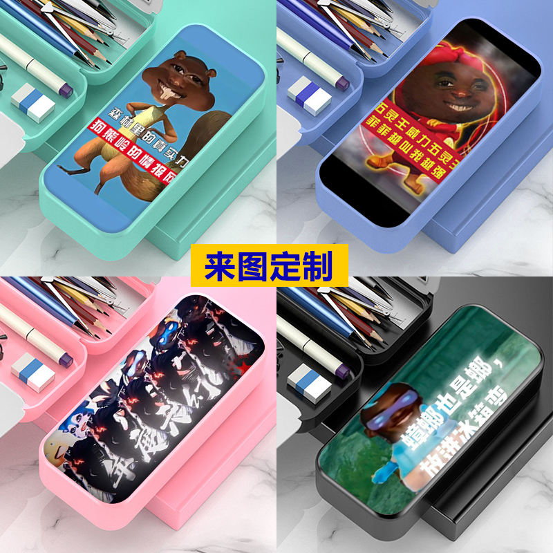 超人强凌晨四点嚼槟榔牢大文具盒耐磨黑科技大容量铅笔盒带计算机