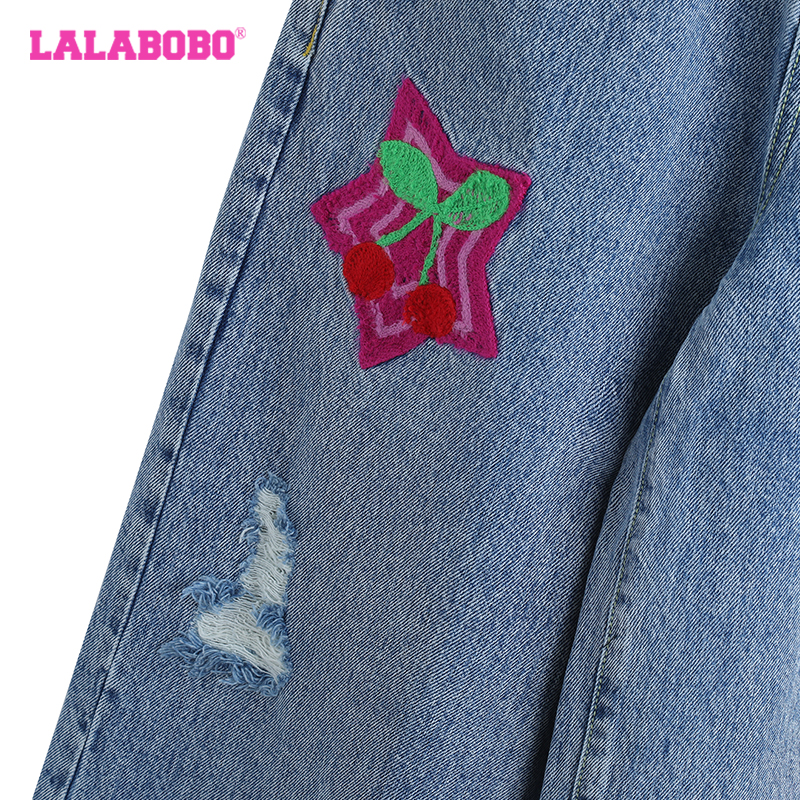 李李服饰线条刺绣微喇牛仔裤女2025秋季新款设计感高腰显瘦弹力裤