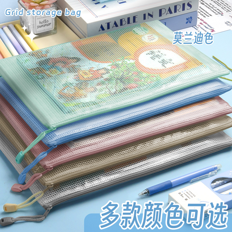 a4拉链袋文件袋学科袋办公学科分类收纳透明学生用加厚防水档案中小学生科目试卷收纳装作业文具网格补习袋