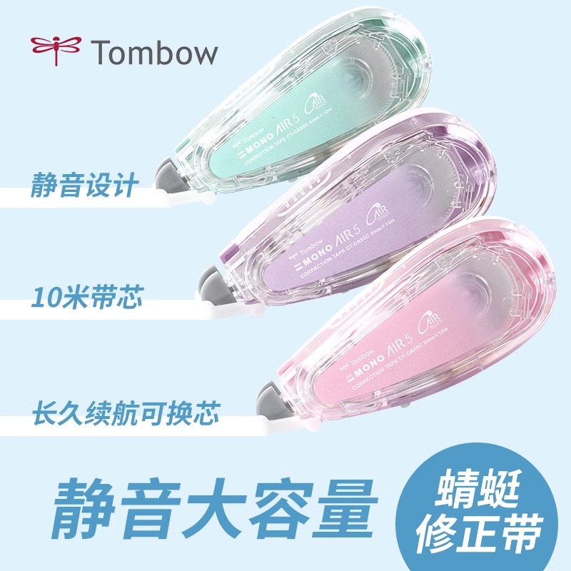 日本Tombow蜻蜓修正带MONO AIR5限定可换替芯高颜值实惠涂改带去字大容量静音纠改正带初高中学生专用进口