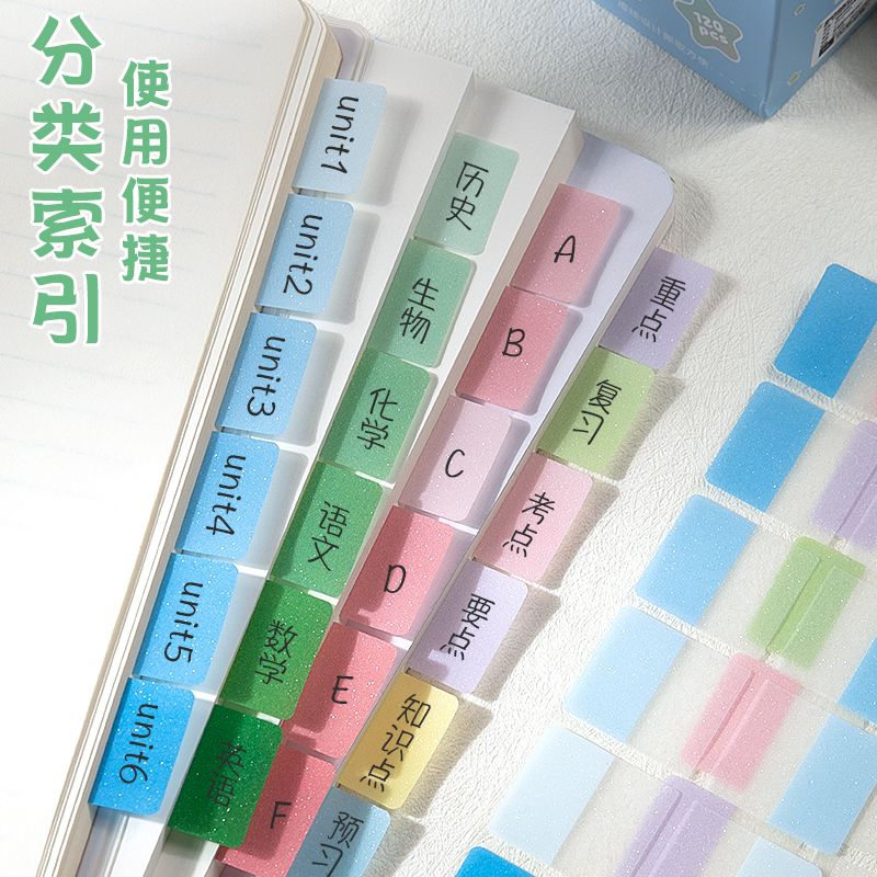 思进抽拉式透明珠光索引贴便签贴纸可书写初中生专用高颜值ins风粘性笔记贴标签贴便利贴重点学习分类标记贴