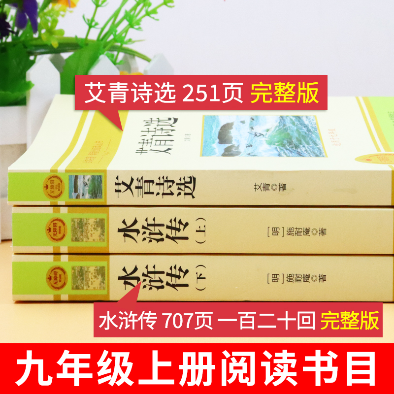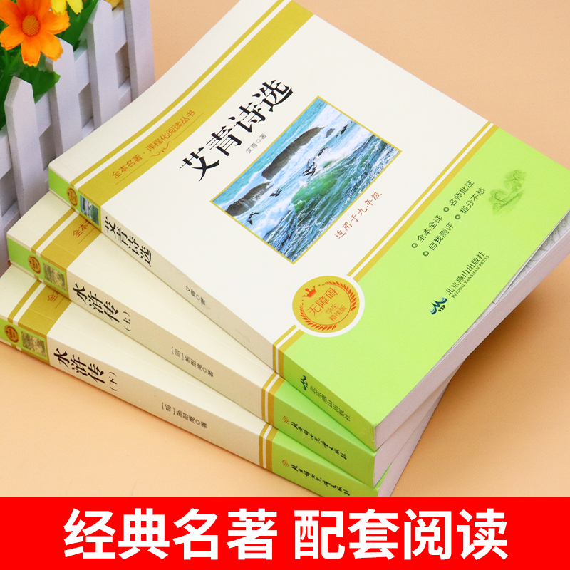 艾青诗选和水浒传原著正版完整版九年级课外阅读书籍必读正版名著初三上册的课外书初中生配套人教版书目简爱唐诗三百首全集诗集Q