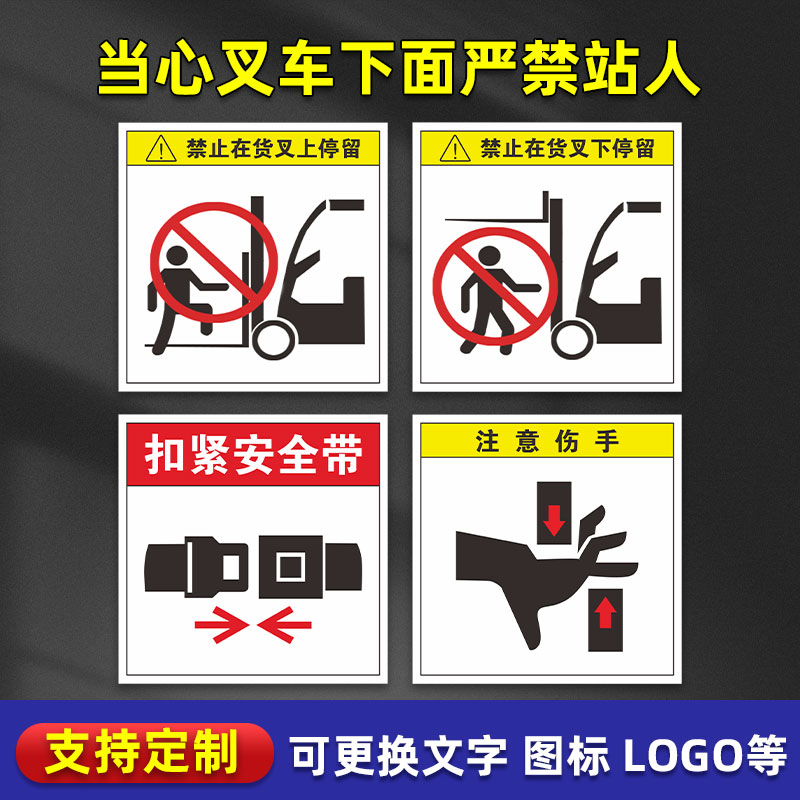 叉车安全警示标志贴纸警示牌当心下面严禁站人标识牌请系好安全带夹手禁止攀爬注意标贴请勿提示警告防水门口