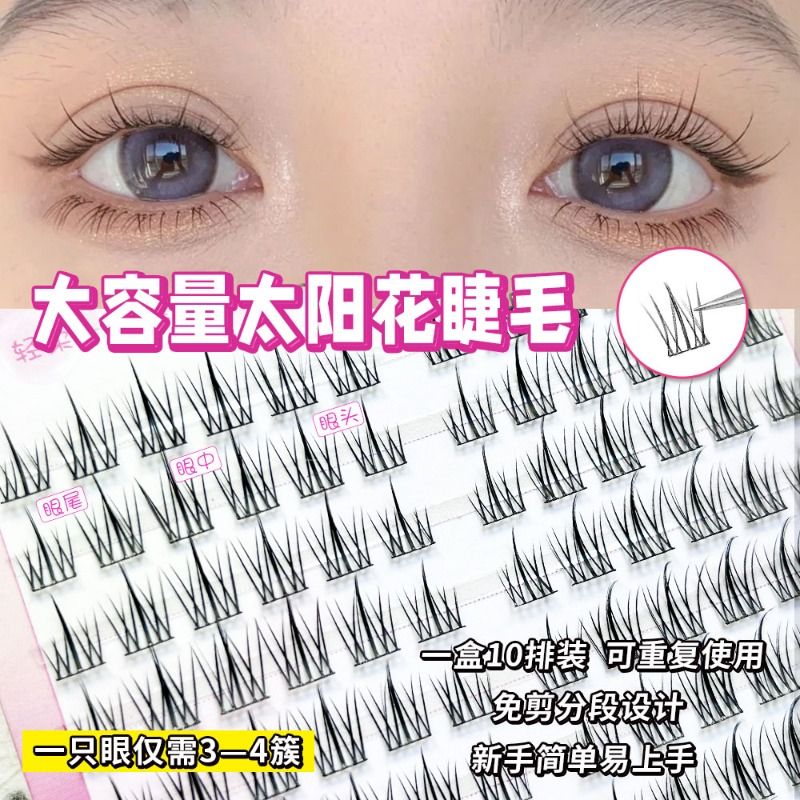 120朵纯欲太阳花~懒人小恶魔睫毛假睫毛单簇细梗自然胶水三部曲