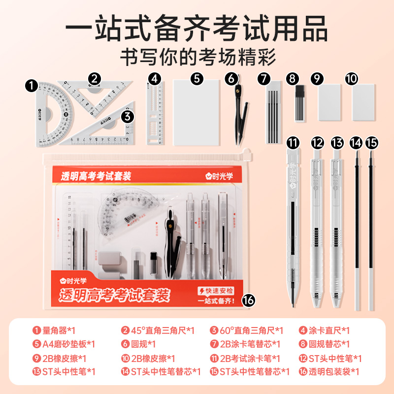 时光学中高考试套装透明文具套装高考专用一站式备齐学生成人考试