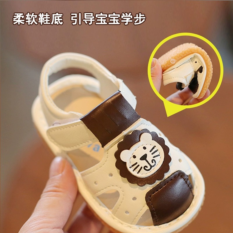 婴儿凉鞋夏季软底包头宝宝0-1岁小童6个月有声音学步鞋会响叫叫鞋