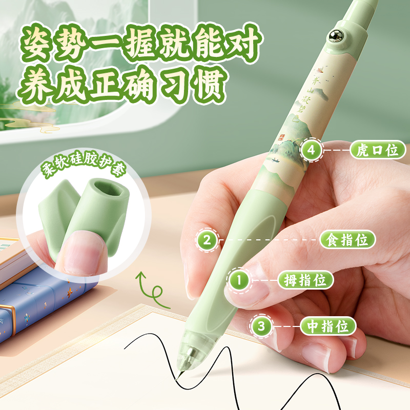 多功能减压按动钢笔中国风小学生专用三年级练字可换墨囊热可擦高颜值女生直液式吸墨式四年级蓝黑墨囊