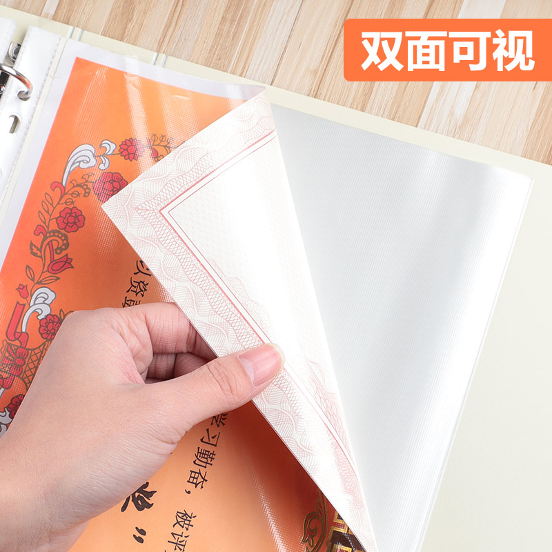 创易A4文件夹4孔D型活页夹100页奖状收集册学生用海报手幅11孔插页文件袋时尚荣誉证书营业执照资料册收纳夹