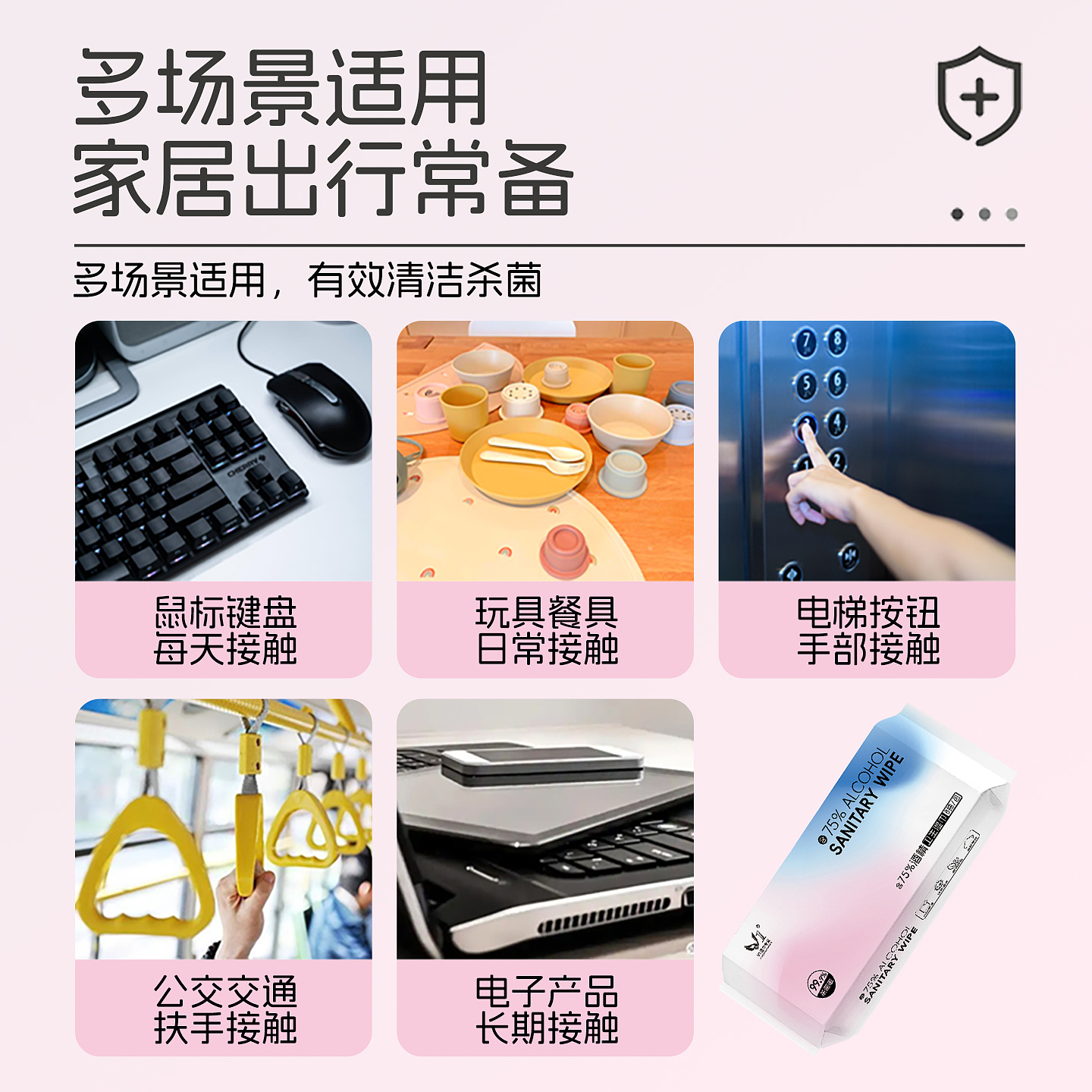 迷你湿巾含75%酒精手提装便携小包湿巾外出便携清洁学生免洗湿巾