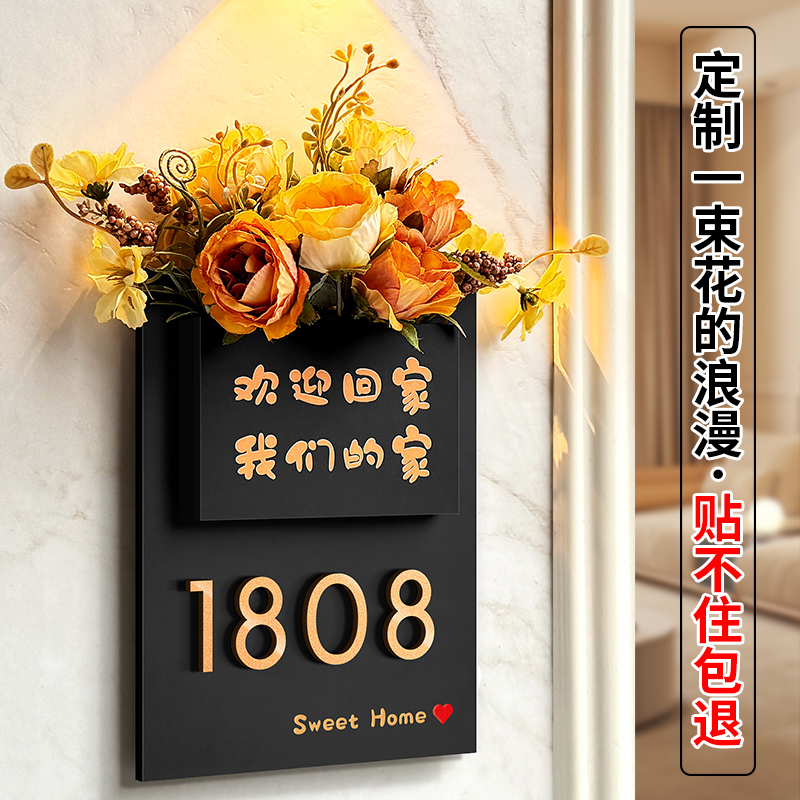 门牌号高级感轻奢创意入户门口欢迎回家仪式感号码牌家用装饰自粘2025年新款家庭住宅门挂插花门号数字贴定制