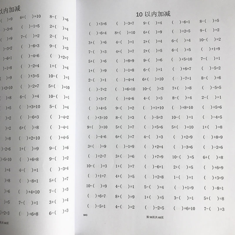 小学数学本一年级上10以内加减法混合口算填空题作业本算术簿
