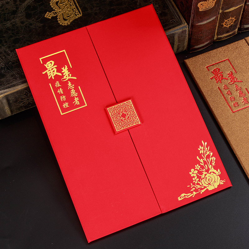 a4疫情防控最美志愿者烫金封面医生纪念感谢信奖状获奖公益抗疫荣誉证书外壳定制logo封套抗击新冠社区服务