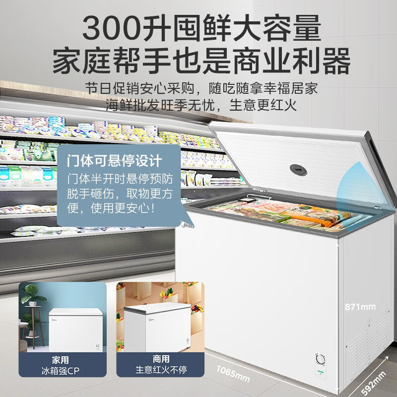 美的300升家用冷柜大容量冰柜减霜80%冷藏冷冻囤货大冰柜