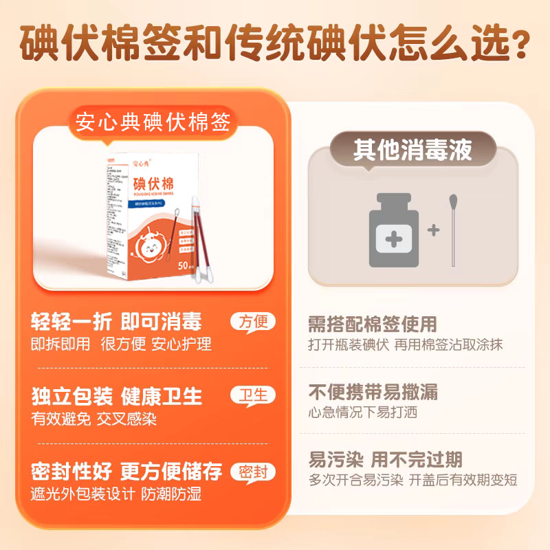 金士达碘伏棉签一次性宝宝新生儿肚脐带消毒婴儿棉棒独立包装50支
