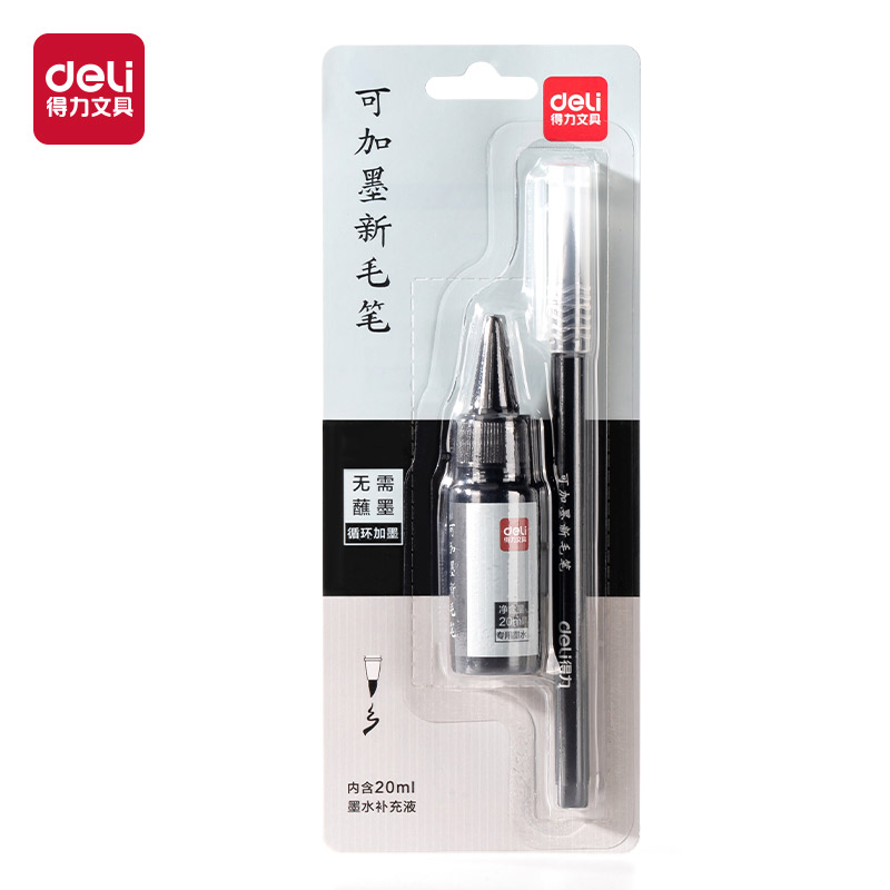 得力HW116可加墨新毛笔书法专用进口纤维笔头学生练字小楷软毛笔