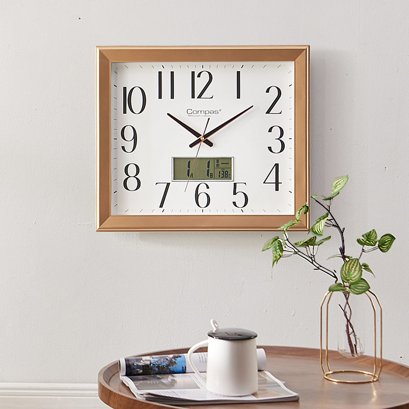康巴丝静音挂钟方形客厅万年历现代时钟简约挂表创意家用石英钟表
