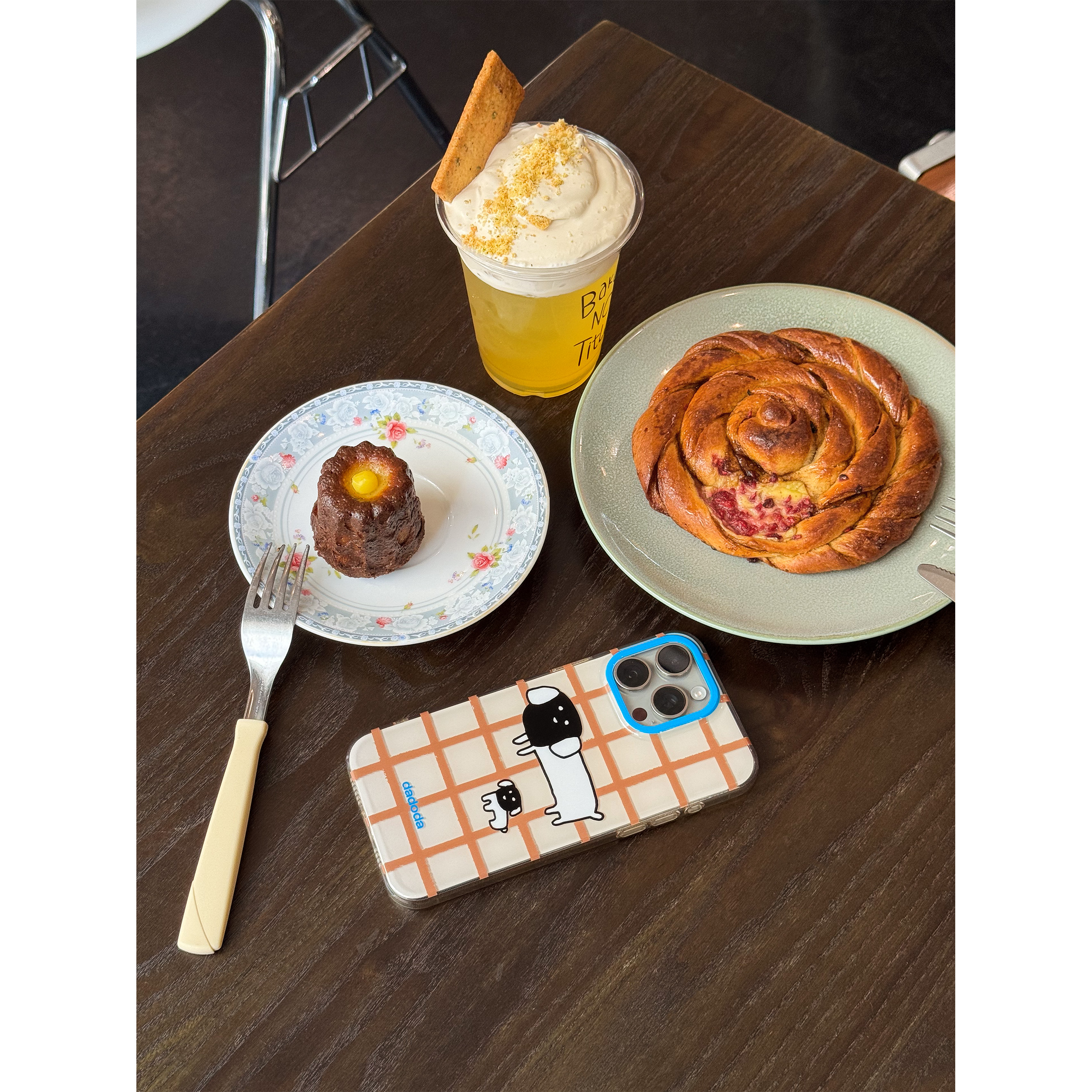 大多大windfall原创手机壳 黑脸小狗 华夫格子 适用于苹果iphone 小盐巴同款底壳 双层imd 圆润边