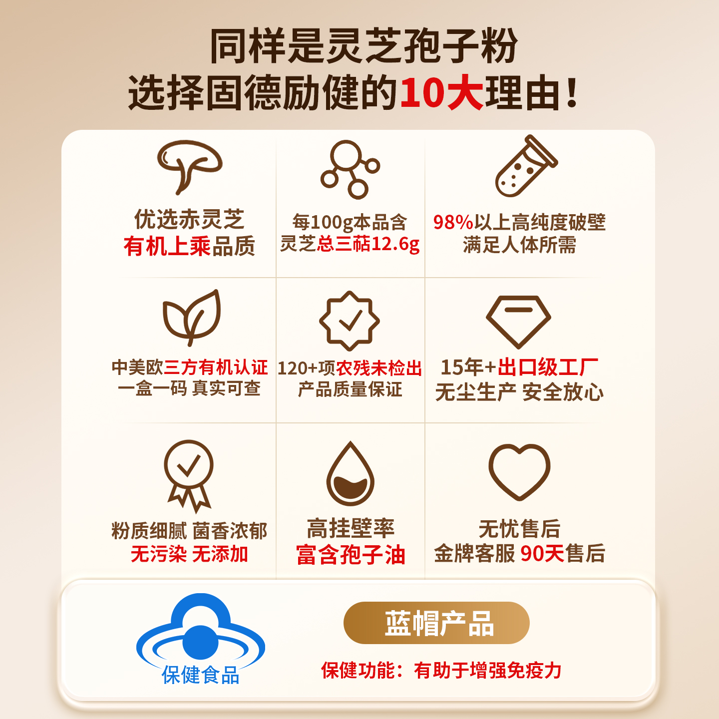 固德励健有机破壁灵芝孢子粉赤灵芝有助于成人中老年人增强免疫力