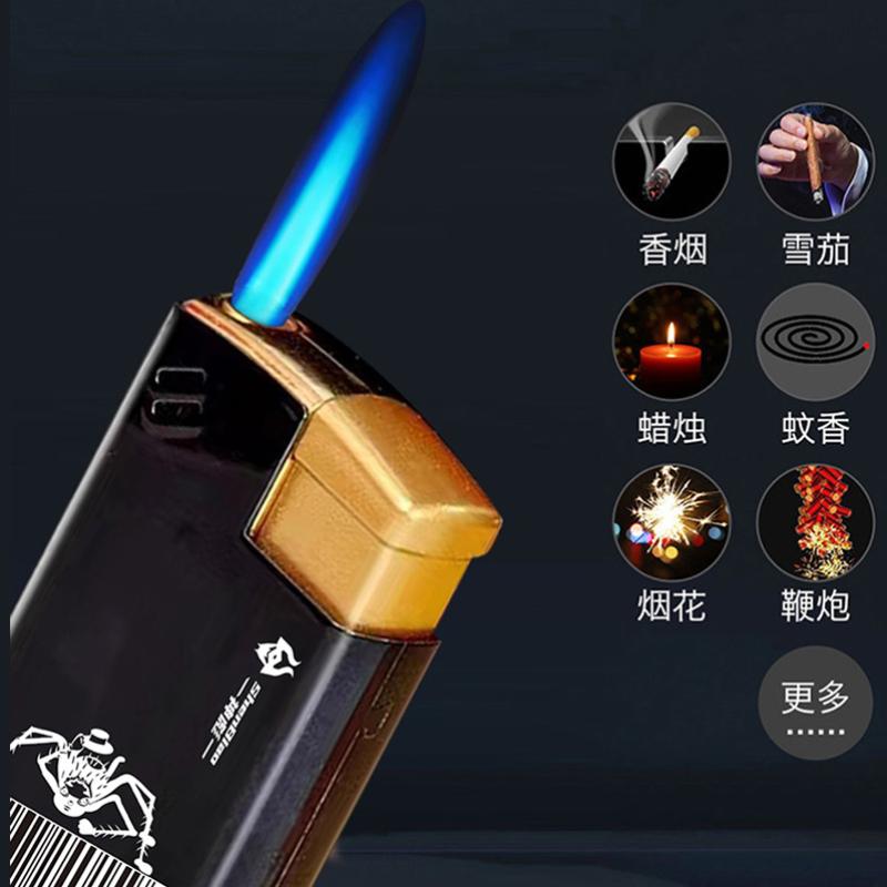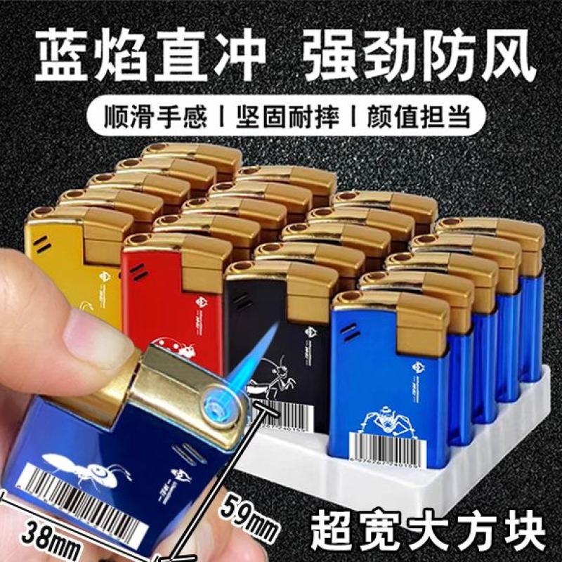 超宽大号金属蓝焰直冲防风打火机可充气激光广告logo批发家用点火