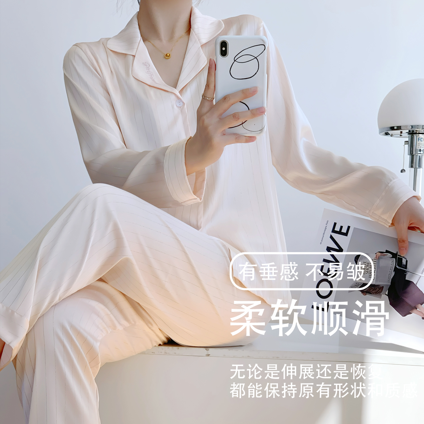 乐姿梦丝绸睡衣女款夏高级感冰丝家居服春秋季薄款长袖女人味套装