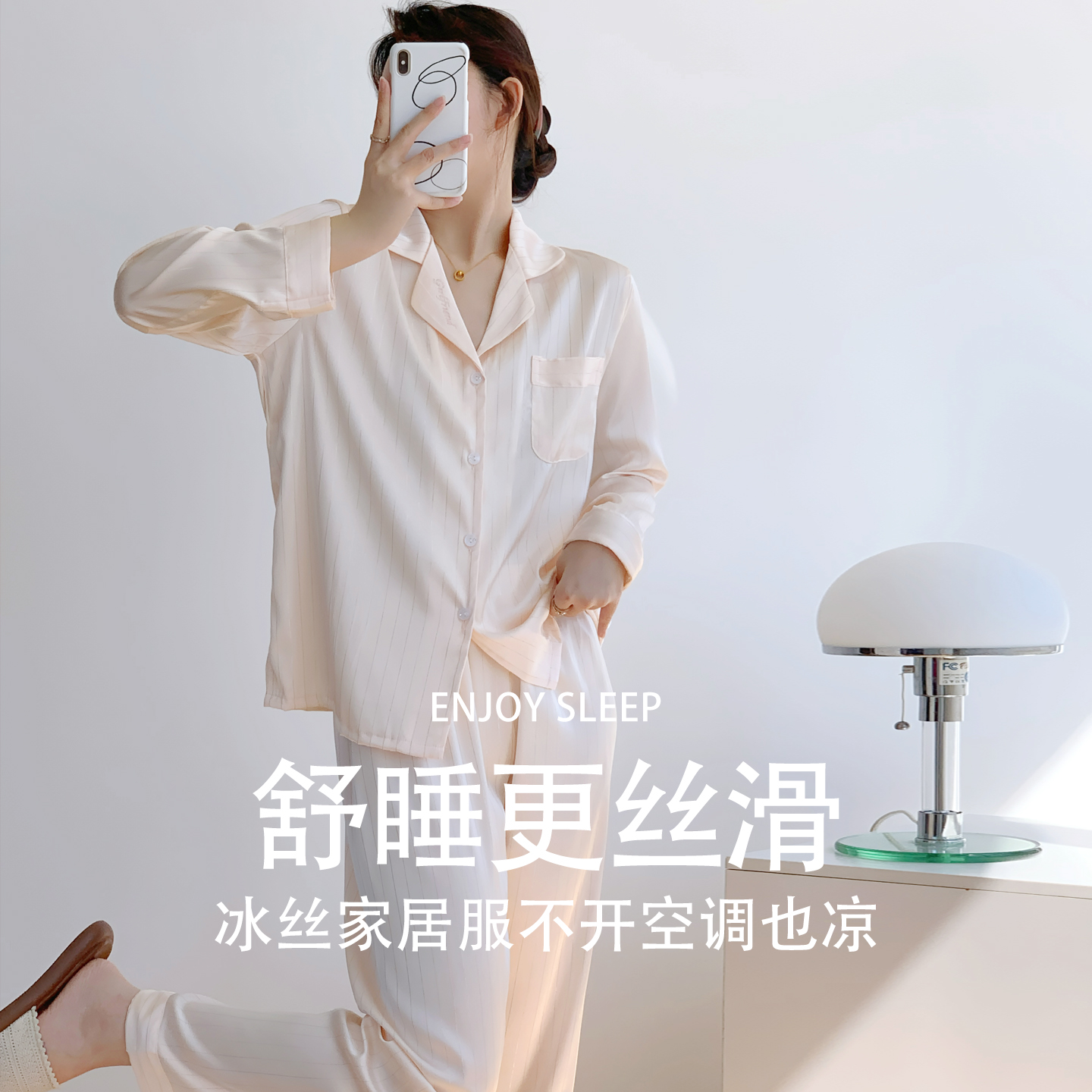 赵露思同款蕉内丝丝515Home家居服冰丝女款胸垫秋季长袖天丝睡衣