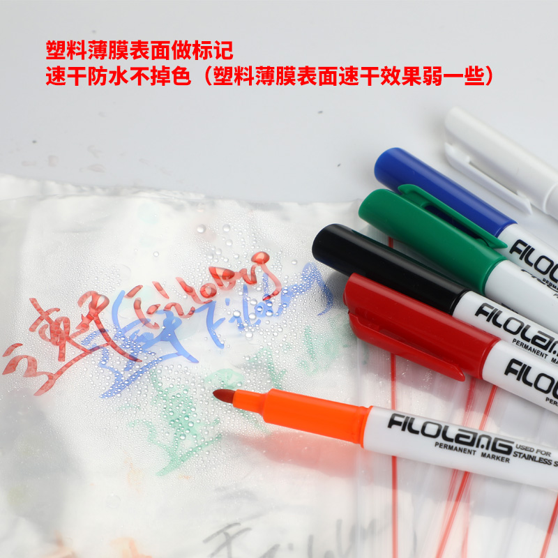 日式费洛朗速干记号笔防水不掉色薄膜玻璃瓷砖金属实验室载玻片油性马克笔防褪色黑色签名笔白色工业用油性笔