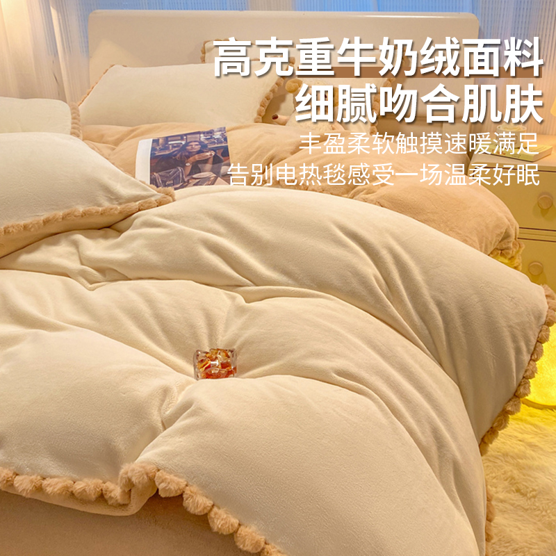 新款冬天牛奶绒四件套珊瑚绒床品双面法兰绒被套厚加绒床单三件套