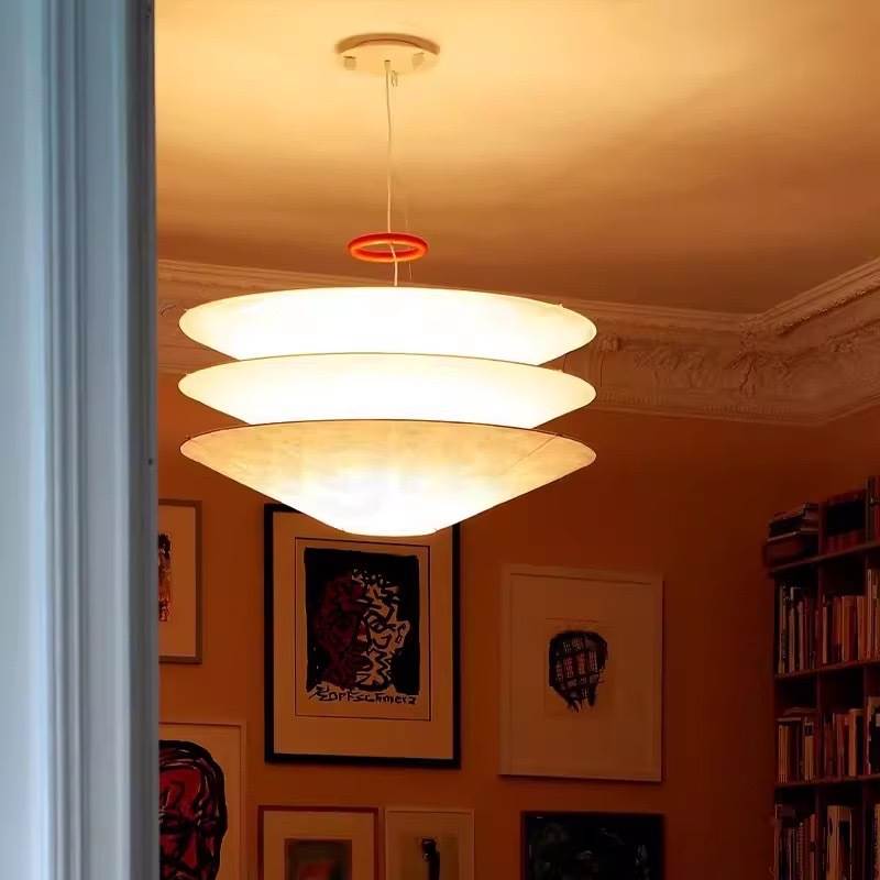 北欧极简别墅餐厅创意吊灯三层纹理纸质悬浮大堂客样板房厅艺术灯