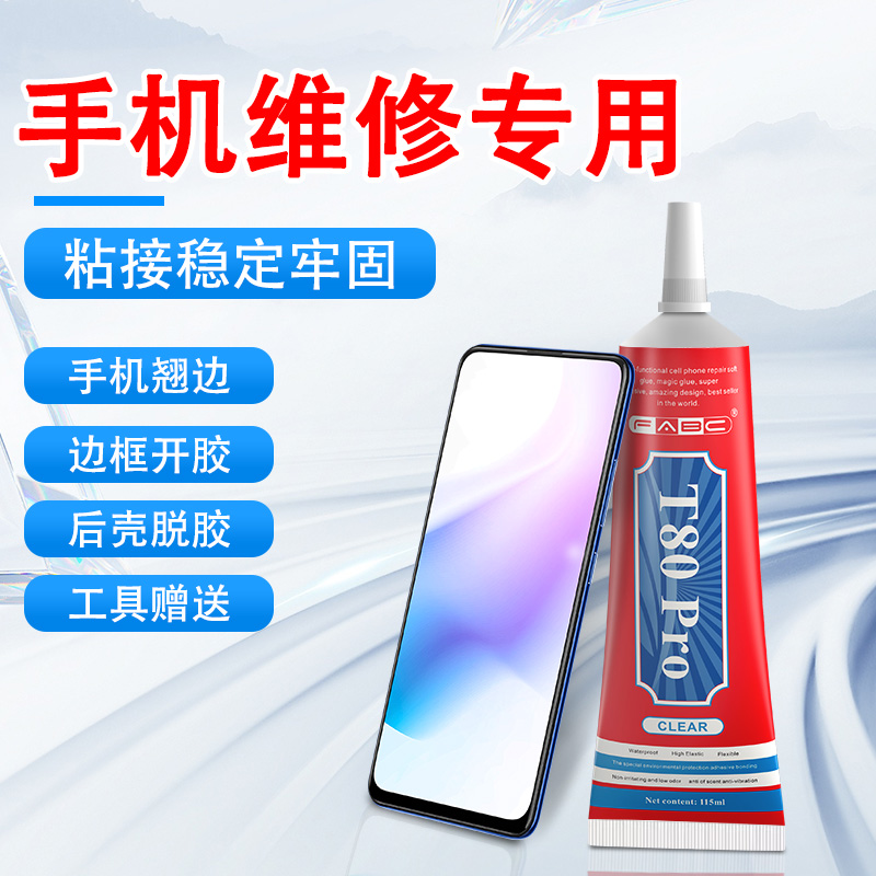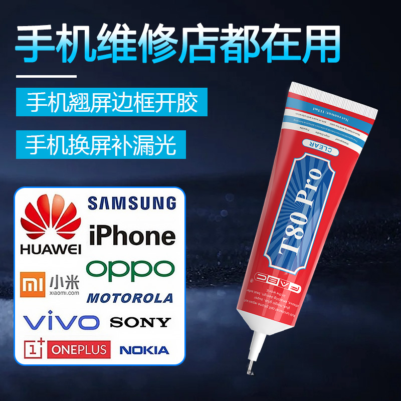 FABC 手机屏幕胶水粘手机平板边框密封粘合胶修复苹果外屏翘屏后盖后壳开胶封边维修外屏专用胶的t80防水黑胶