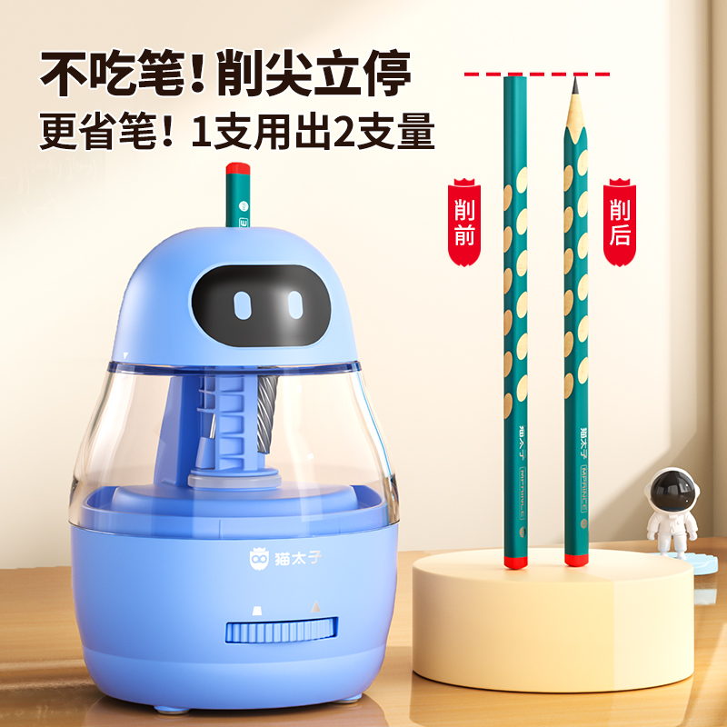 猫太子自动削笔刀电动削笔器全自动削铅笔器洞洞刨笔绞笔三角铅笔