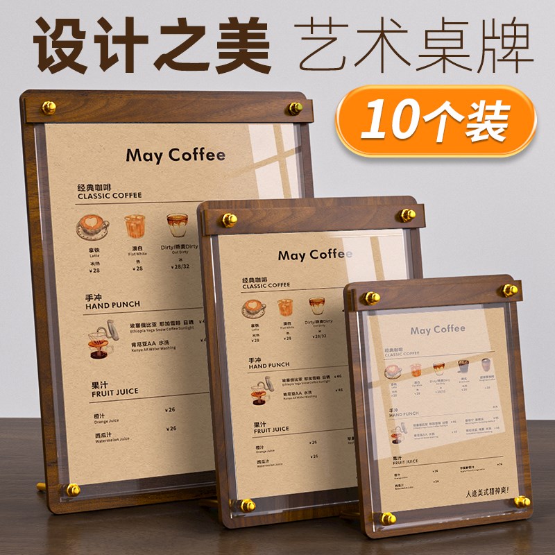 菜单展示牌木质桌牌台卡亚克力立牌展示架a4价目表定制餐厅桌面价