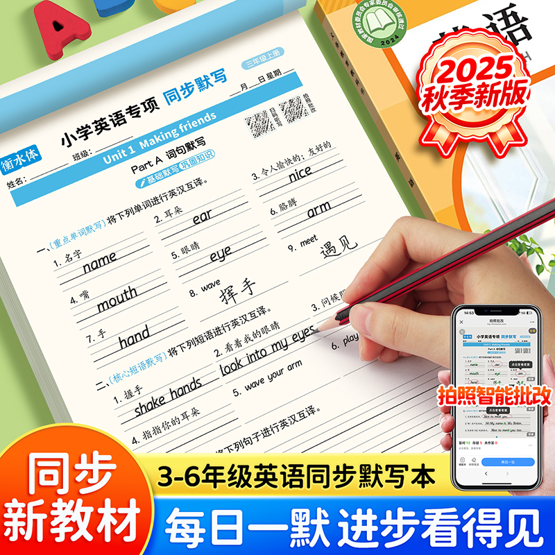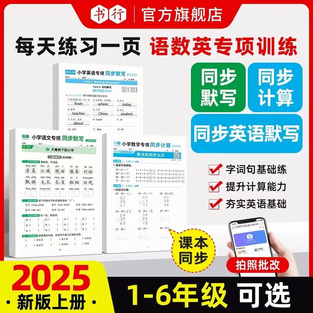 【抖音同款】书行2025新小学语数英默写听力计算五合一同步专项训练生词语句巩固计算能力提升单词听写提优词语积累每日一练r