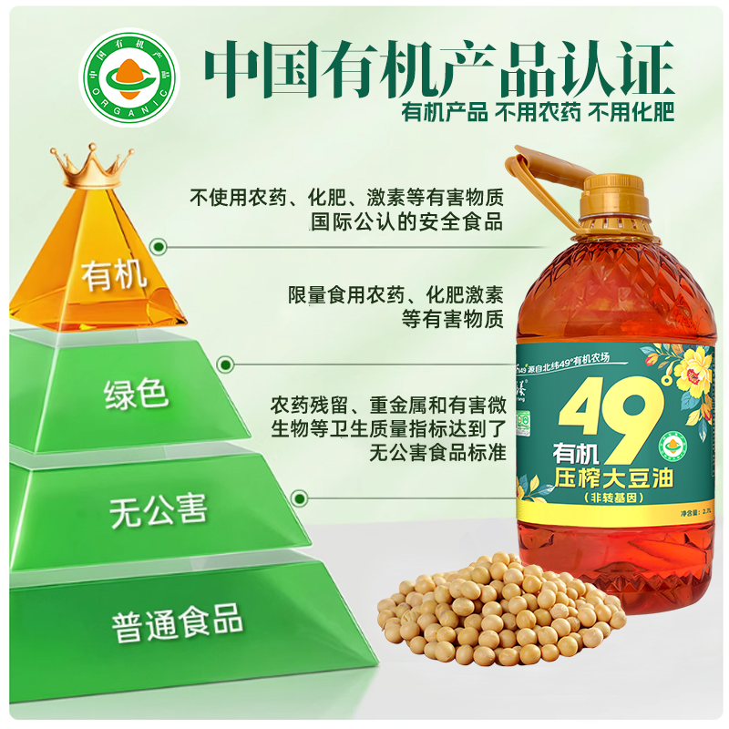 有机福养非转基因压榨豆油食用油东北大豆笨榨2.7L物理榨油古法
