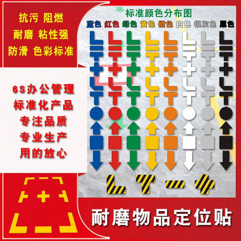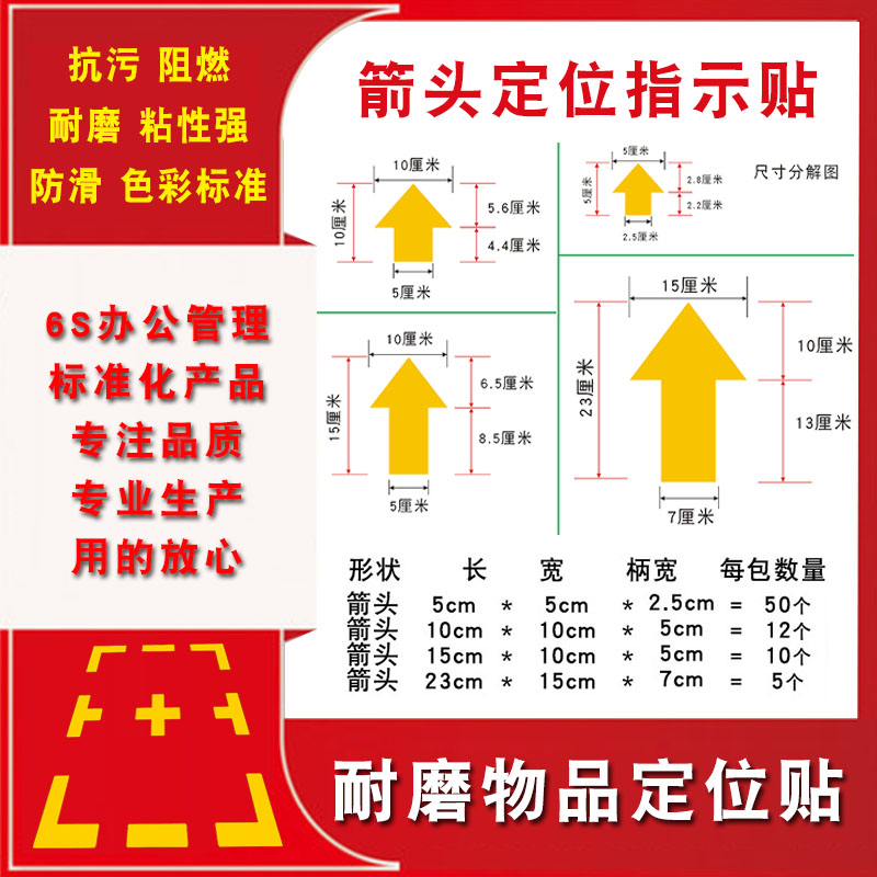 定位贴5s桌面6S车间地面指示标识方向指引贴定位定置安全通道箭头指示消防疏散标识箭头方向标耐磨防水地贴