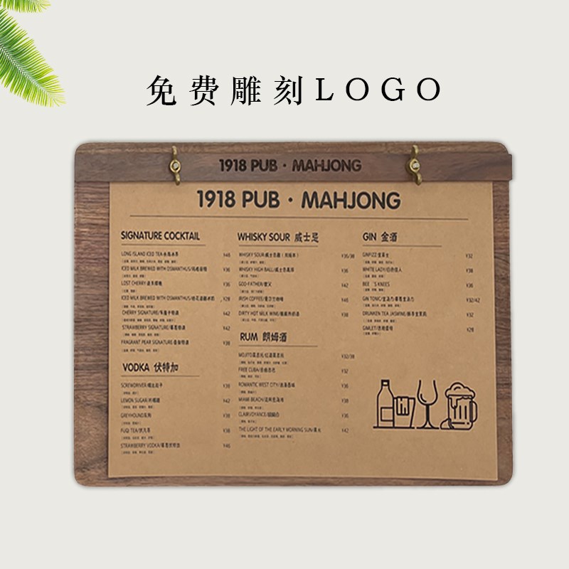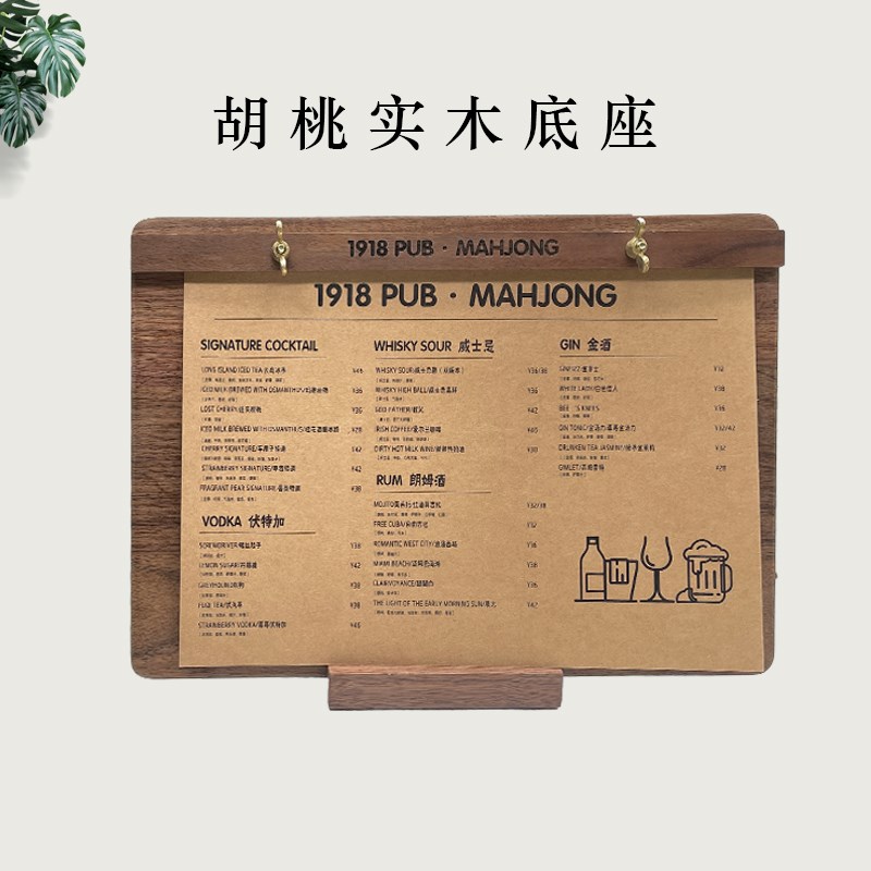 设计打印菜单A4黑胡桃实木立式展示牌美甲咖啡奶茶酒水价目表制作