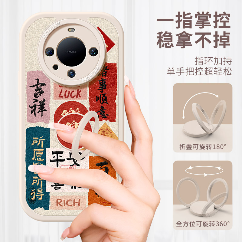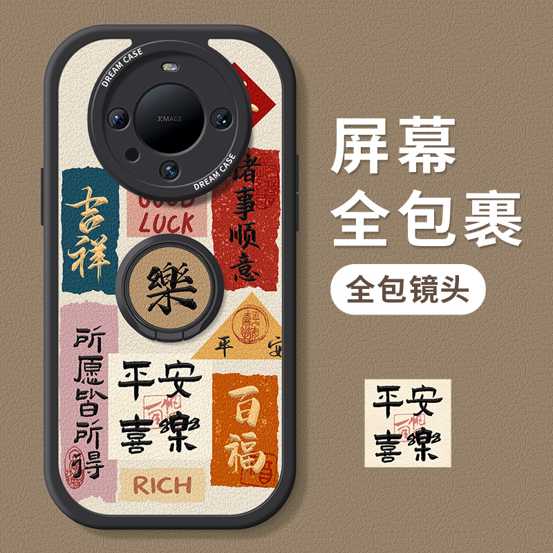 适用华为mate60pro手机壳女mate40pro防摔30/50新款p40保护壳p30全包镜头5g指环金属支架诸事顺利喜庆红色