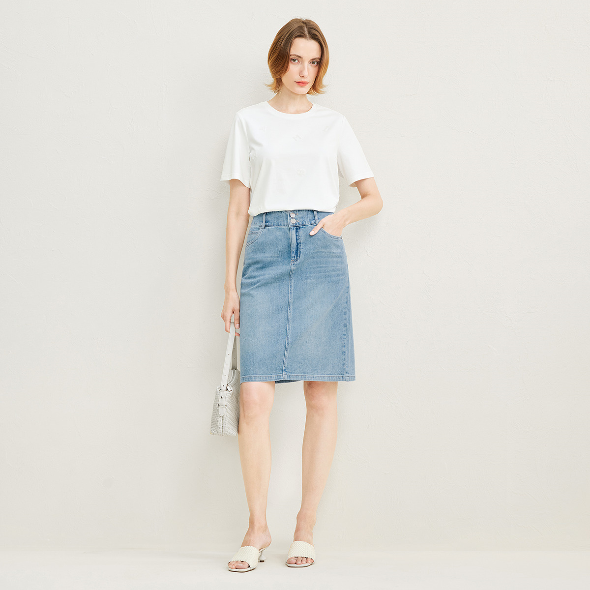 FINITY菲妮迪牛仔半身裙2025年夏季新款简约气质百搭减龄半裙女