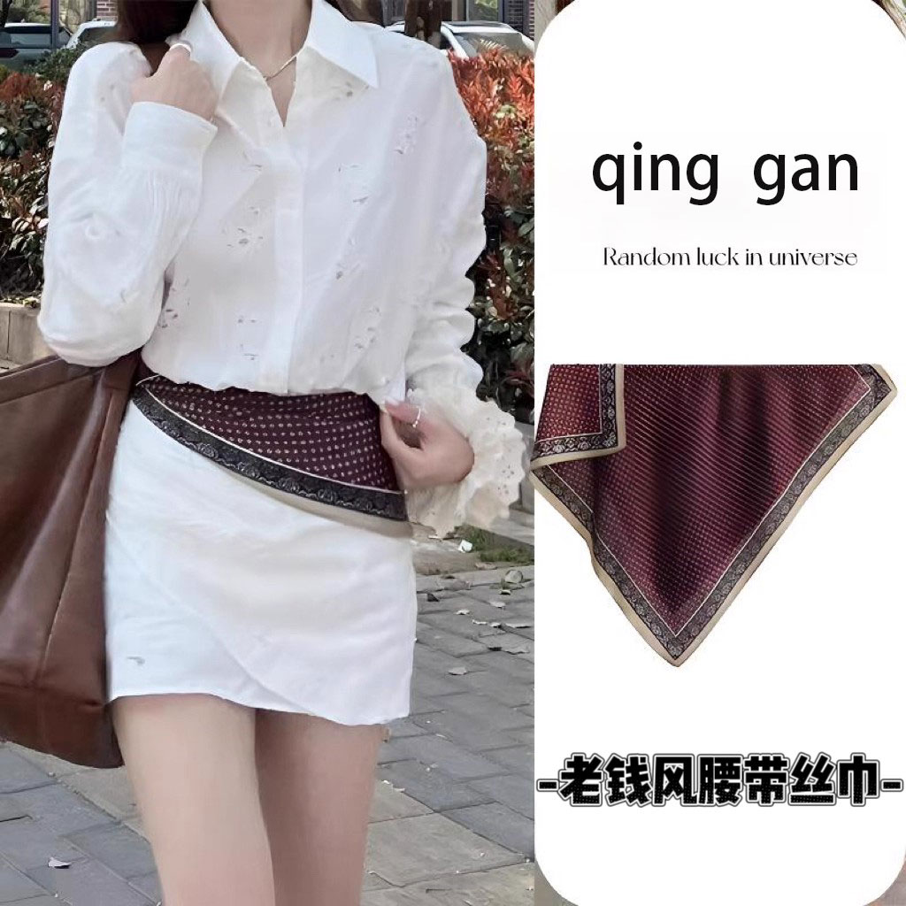 丝巾2025春秋款气质腰巾系腰高级感方巾洋气时尚百搭复古柔软围巾