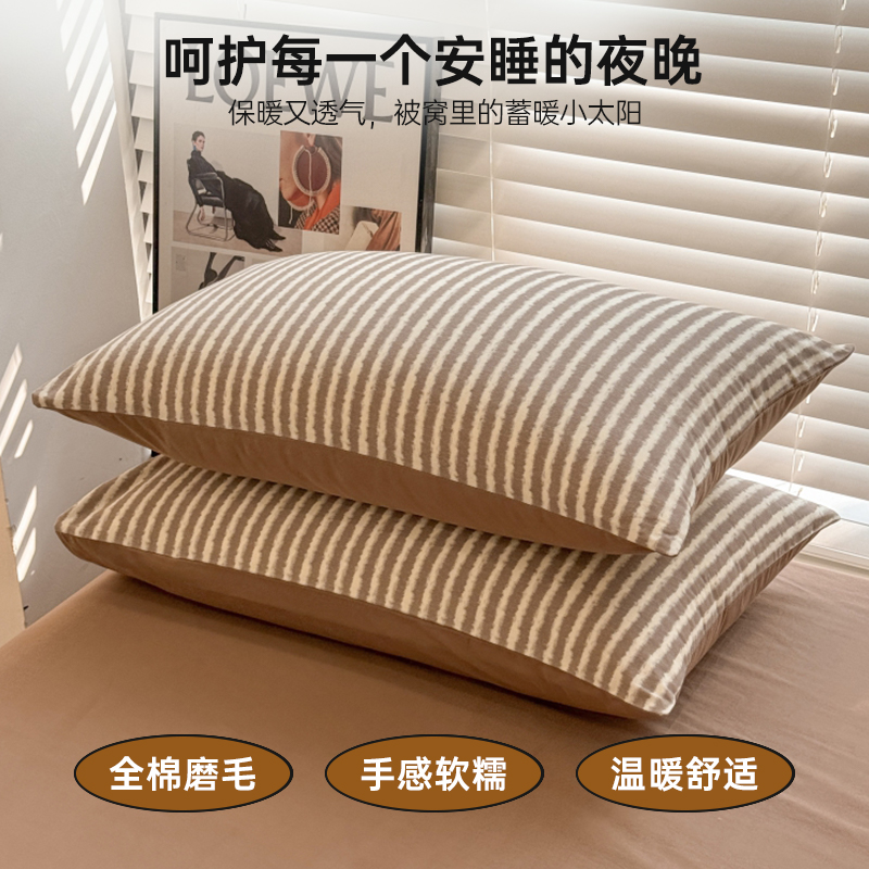无印良品纯棉磨毛枕套一对装家用单人加厚全棉枕头套枕芯内胆套男