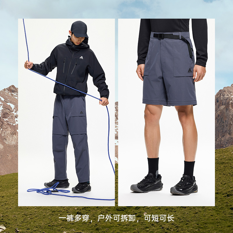 安踏山壳裤丨大地之壳3.0户外三防梭织两穿运动长裤男工装登山裤