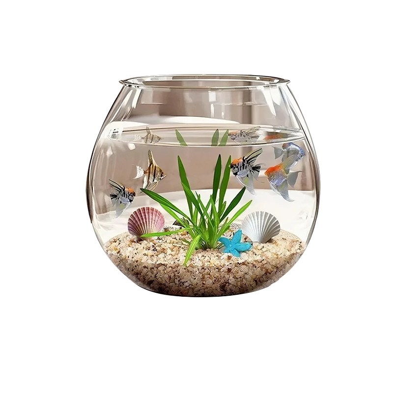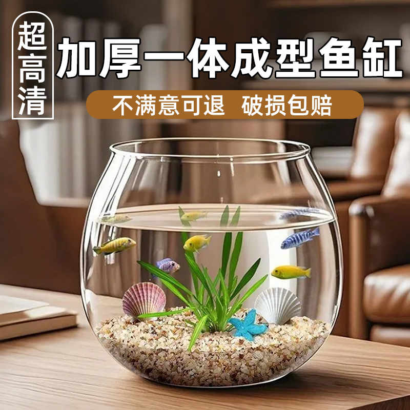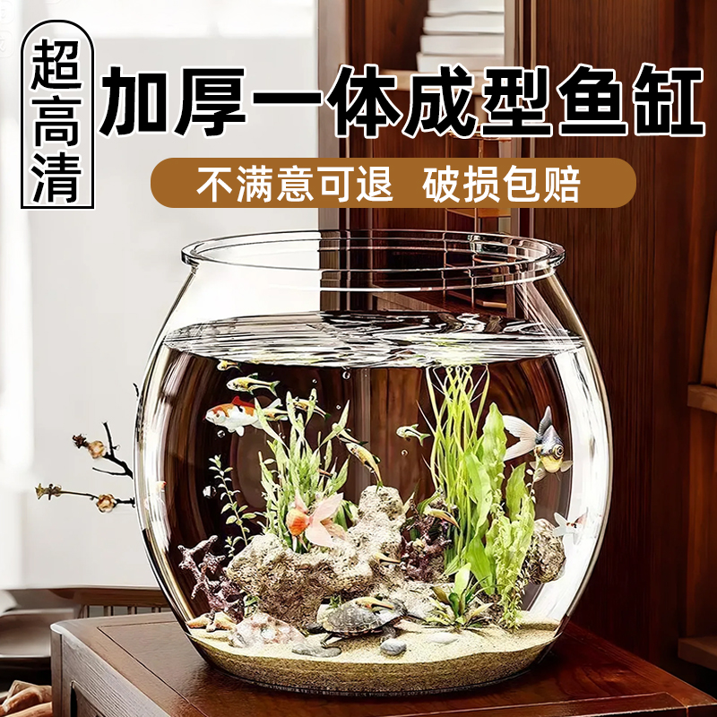 桌面鱼缸圆形客厅小型金鱼乌龟饲养造景制氧一体成型仿玻璃生态缸