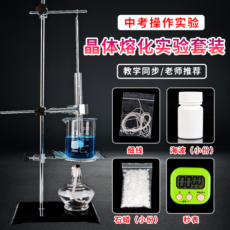 冰/海波/萘晶体熔化融化特点实验套装石蜡非晶体溶解初中物理热学实验中考操作凝固物态变化液体水沸腾加热