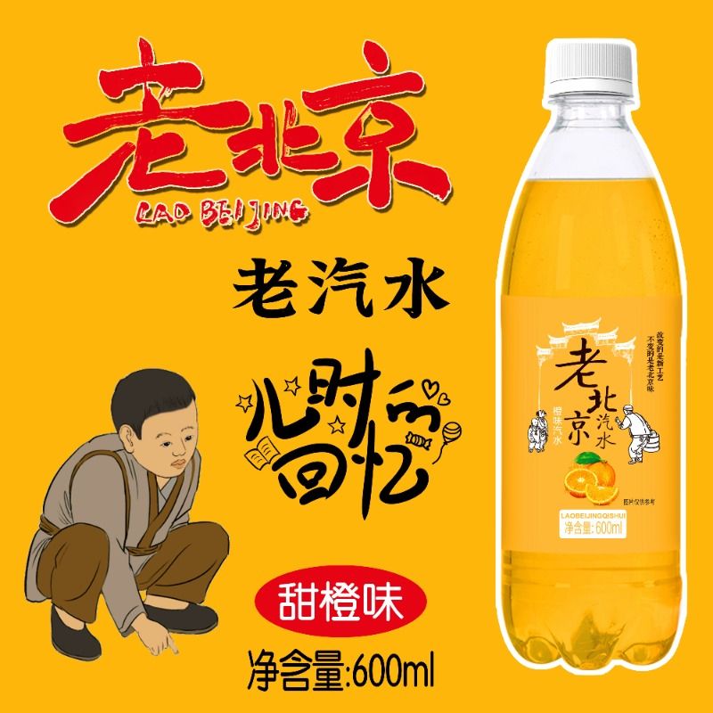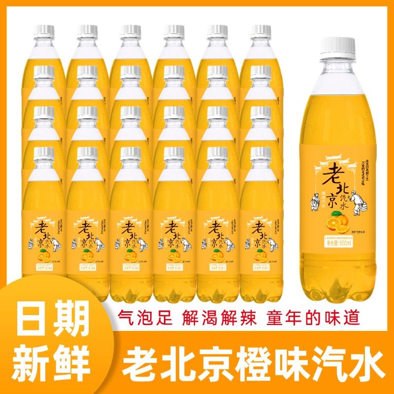 老北京橙味汽水600ml *24瓶橘子味香槟解渴怀旧80后碳酸饮料整箱