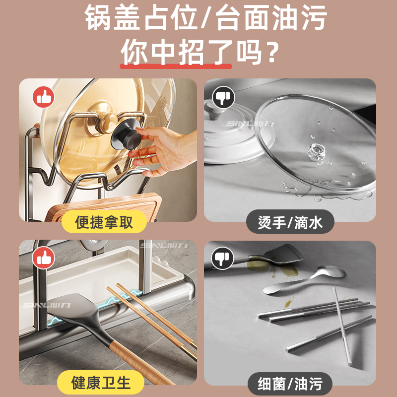 台面锅盖架厨房灶台锅铲沥水架收纳架2025新款砧板菜板锅盖放置器