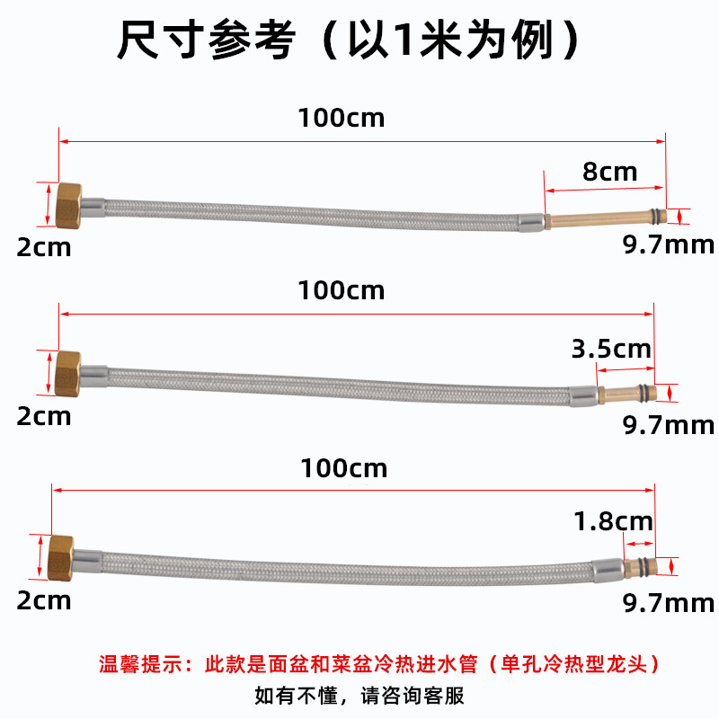 4分内外丝软管加长延长管304不锈钢编织冷热进水管耐高温